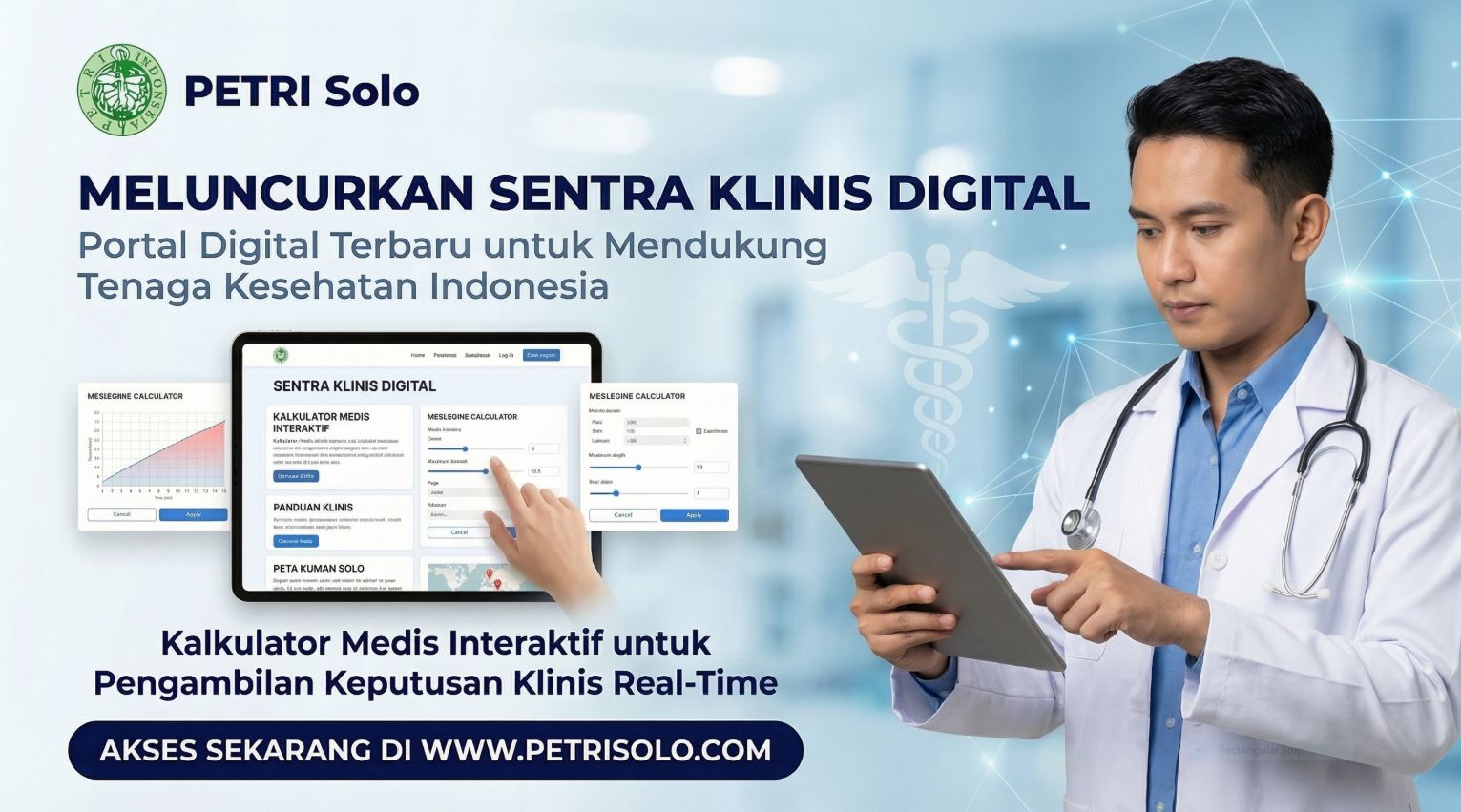 Perhimpunan Dokter Spesialis Tropik Infeksi Surakarta (PETRI Solo) resmi meluncurkan inisiatif digital terbaru mereka, sebuah portal "Sentra Klinis Digital" yang dirancang khusus untuk membantu tenaga kesehatan (nakes) di seluruh Indonesia. Melalui laman website www.petrisolo.com, PETRI Solo menyediakan berbagai kalkulator medis interaktif untuk mempermudah pengambilan keputusan klinis di sisi pasien secara real-time.