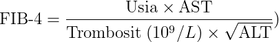 | APRI (AST to Platelet Ratio Index) | $\frac{AST (/ULN)}{Trombosit (10^9/L)} \times 100$ | > 1.50 |